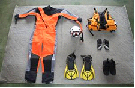 水難救助の際に航空隊員が着装する ドライスーツ・ヘルメット、ライフジャケット・ゴーグル・シュノーケルグローブ・マリンブーツ・フィン