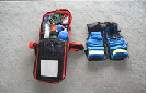 救急用資器材 救急処置用救急バック(酸素ボンベ、バッグマスク、喉頭鏡、外傷セット、その他)救急ベスト(体温計、血圧計、パルスオキシメーター、その他)