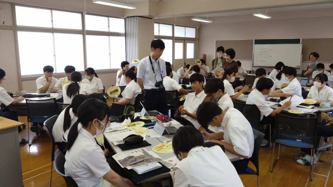 諫早東高等学校にて土砂災害にかかる防災教育の授業を実施し、土砂災害についての座学、防災カードの作成をグループワーク形式で