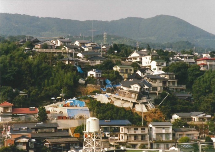 住宅密集地での地すべり (佐世保)