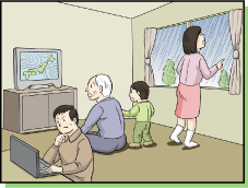 | 普段から家族全員で避難場所や避難 路、避難方法を確認しておきましょう。 |