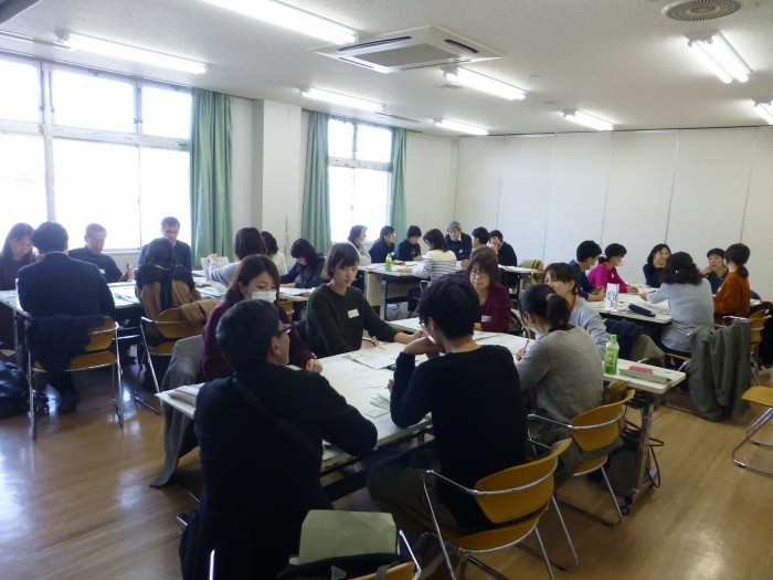 約150名の参加があり、講師による講演、実践報告の後、グループワークを行いました。