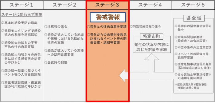 • 県下の感染段階をステージ3に引き上げ。