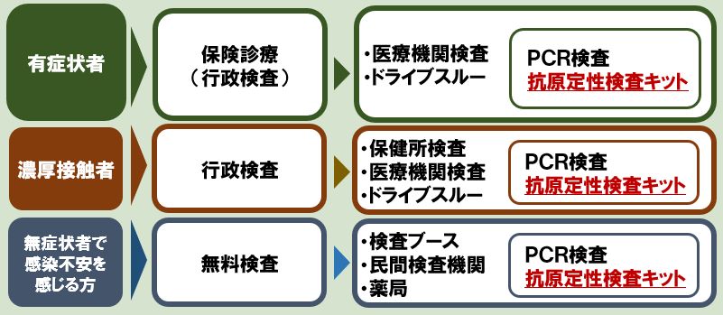 - 抗原定性検査キットで対応している医療機関が多いなか、無料検査や濃厚接触者の検査に抗原定性検査キットが使用されることで、医療機関での検査が困難となりつつある