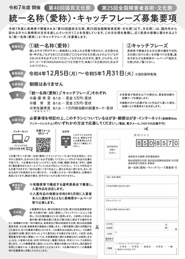 「第40回国民文化祭、第25回全国障害者芸術・文化祭」統一名称(愛称)・キャッチフレーズ募集チラシ[PDFファイル/4MB]