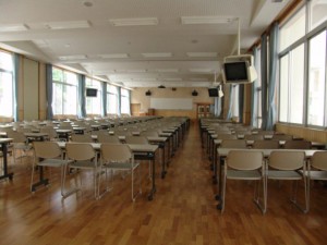 併設している高校の体育館を共用しており、教育環境を改善するために整備した中学校専用の体育館です。