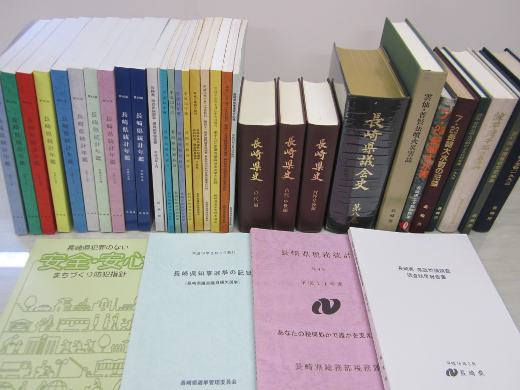 長崎県が職務上作成し、又は収受した刊行物、書籍、地図、ポスター、パンフレット、マイクロフイルムその他これらに類するものを収集し、長崎図書館郷土課へ引き継いでいます。