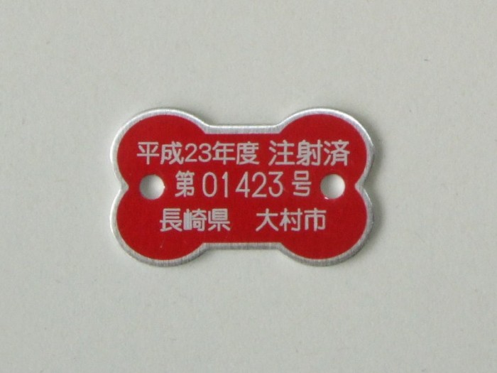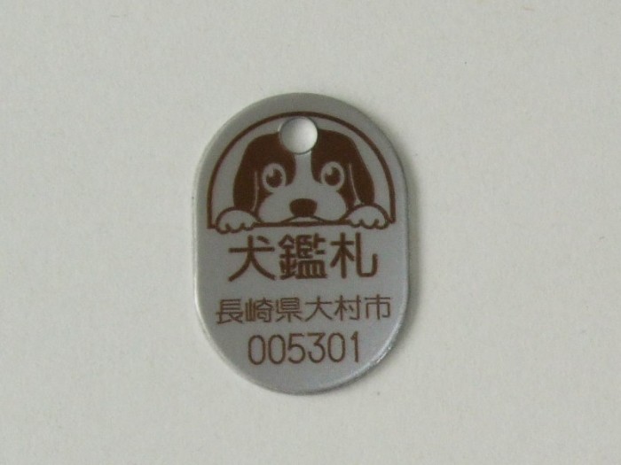 交付された鑑札と狂犬病予防注射済票は、首輪などにしっかりつけましょう。万一、飼い犬が迷子になって保護された時には、迷子札としても役立ちます。