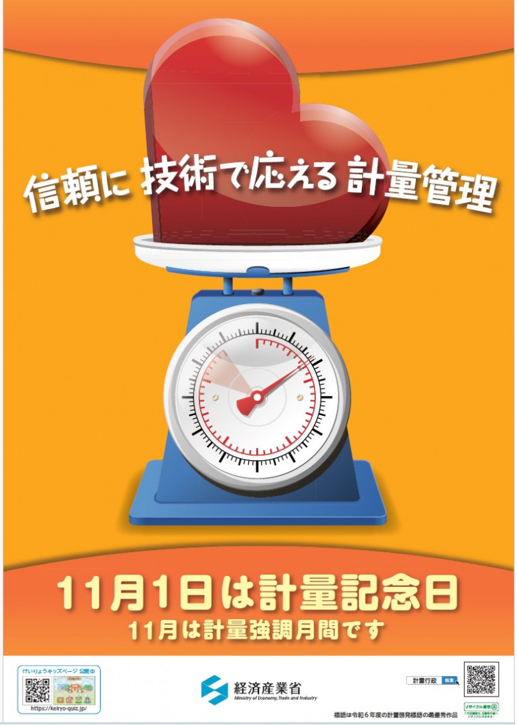 計量制度に対する理解を深めるため、現行の計量法が施行された平成5年11月1日にちなみ、11月1日は「計量記念日」とされています。
