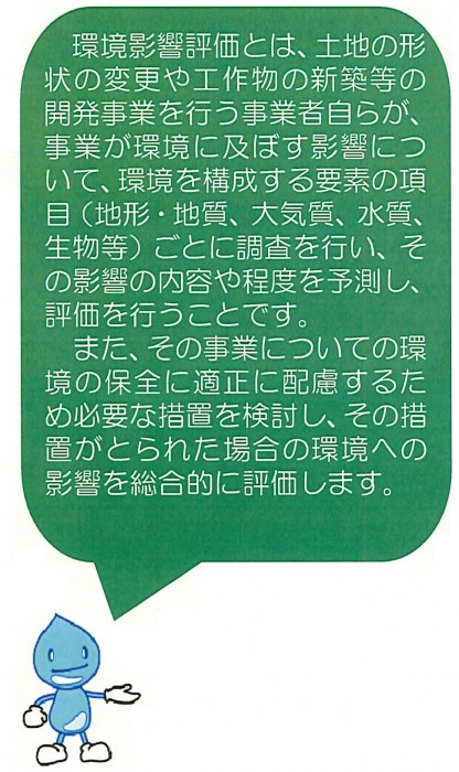 大気汚染や水質汚濁などの調査及び予測により、環境保全措置を検討した結果、事業の実施による環境への影響は、実行可能な範囲内でできる限り回避、または、軽減され、必要に応じ、その他の方法により、環境の保全についての配慮が可能であると評価しています。また、選定した項目に係る環境要素は、環境基準等と整合が図られていると評価しています。