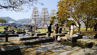 こちらの写真は長崎市常盤町に存在する長崎水辺の森公園の様子を撮影したものです。この公園は「ナガサキ・アーバン・ルネッサンス2001構想」において長崎の新しい顔となるような魅了的な空間として整備されました。この公園整備により多くの県民や観光客が訪れ、帆船祭りなど大型イベントの開催地としても使われております。