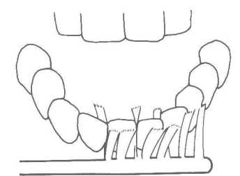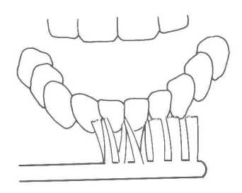 毛先を無理矢理に歯と歯の間に入れる必要はありません。正しく動かすと毛先が数本歯と歯の間に入ってきます。多少歯ぐきに圧迫がある方がマッサージ効果があります。