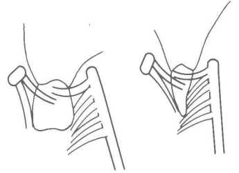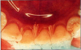 特に若いときの健康な歯ぐきの場合、毛先が入りにくいですが、1-2本の毛が入るように心がけます。