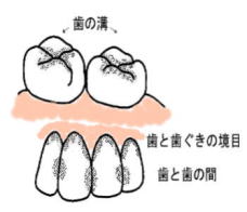 なお、前述((2)毎日の歯みがき)の中で、歯みがきがをして「磨けている」というのは、この歯垢(プラーク)のつきやすい3大プラークゾーンに歯ブラシが正確に当たっていることを言っています。
