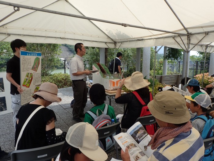 • 両日とも猛暑の中でのイベントとなりましたが、長崎大水害当時の被災水位を測ったり、ダムの中のトンネル(監査廊)の見学や、防災に関するクイズをしたりと、参加された方々には、いつもとは違う体験を通じて土木や防災について学んでいただきました。