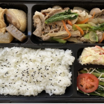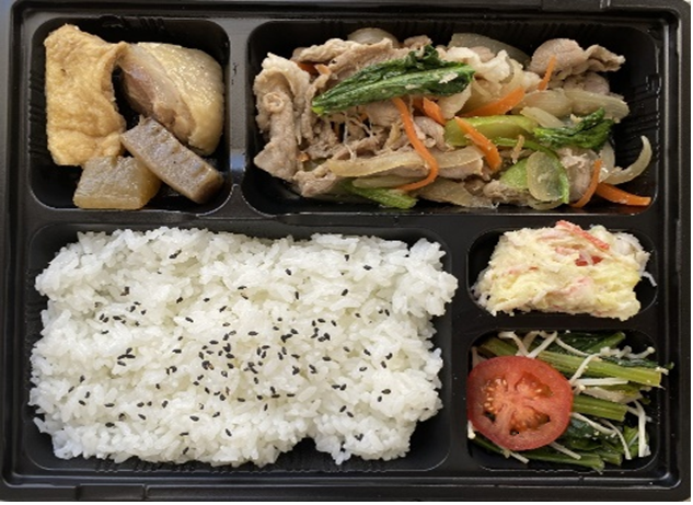 (ホルモンの野菜いため定食、日替わり減塩弁当)