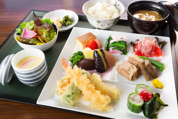 特製出汁に漬込み柔らかく仕上げた鶏肉や半熟玉子、季節の野菜を天ぷらにしました。幅広い層から人気です。