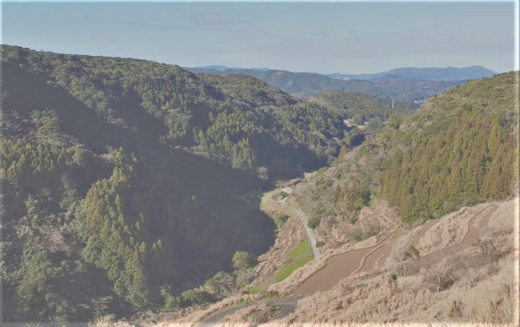 市街地から車で約40分の標高200から250mの中山間地に位置する地域です。夏にはホタルが有名な名所がある自然豊かな地域です。 |