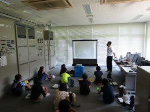 子どもたちが理解しやすいように「宮ノ川ダムの役割は治水と利水がある。」という点を中心に、日常生活にダムがどのような役割を果たしているかを説明しました。説明後には、子どもたちから多くの質問があり、主体的・対話的な学習ができたものと思います。