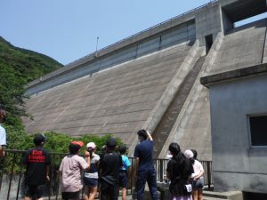 新型コロナウイルス感染症の拡大防止のために、2グループに分かれ、人が密集しないように配慮して開催し、宮ノ川ダムの役割の説明とダム施設の見学を行いました。
