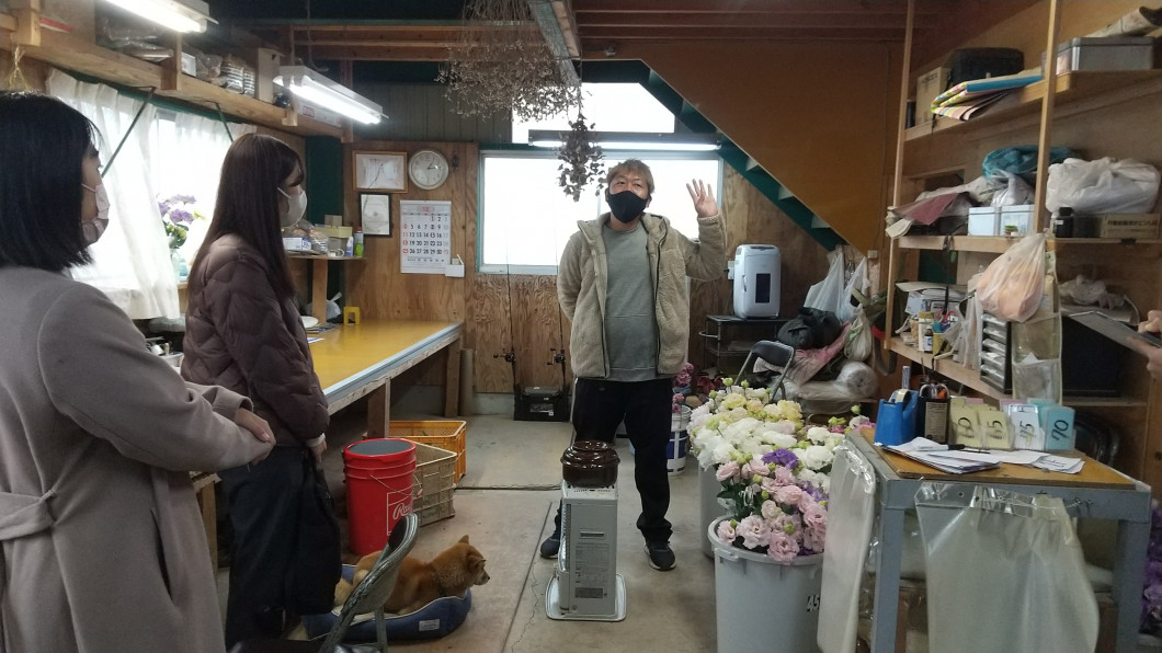 飛永さんからは、人が地域の魅力であることやコミュニティの大切さ、店のオープンにあたっての集落のみなさんのご協力、島原半島の花の魅力、周りのみなさんと一緒に楽しみながら地域活性化に携わっていることなどをお聞かせいただき、島原半島での地域のつながりを知るうえでとても参考になりました。
