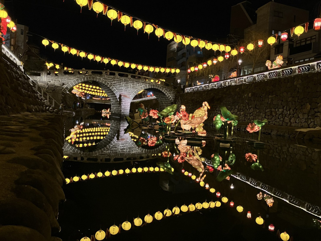 普段でも観光客で賑わう中島川ですが、ランタンに彩られ水面に反射した眼鏡橋は、日中とは違った表情を魅せてくれます。