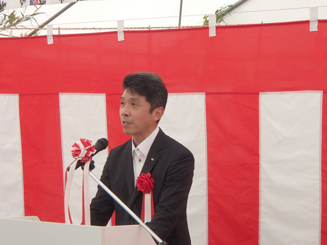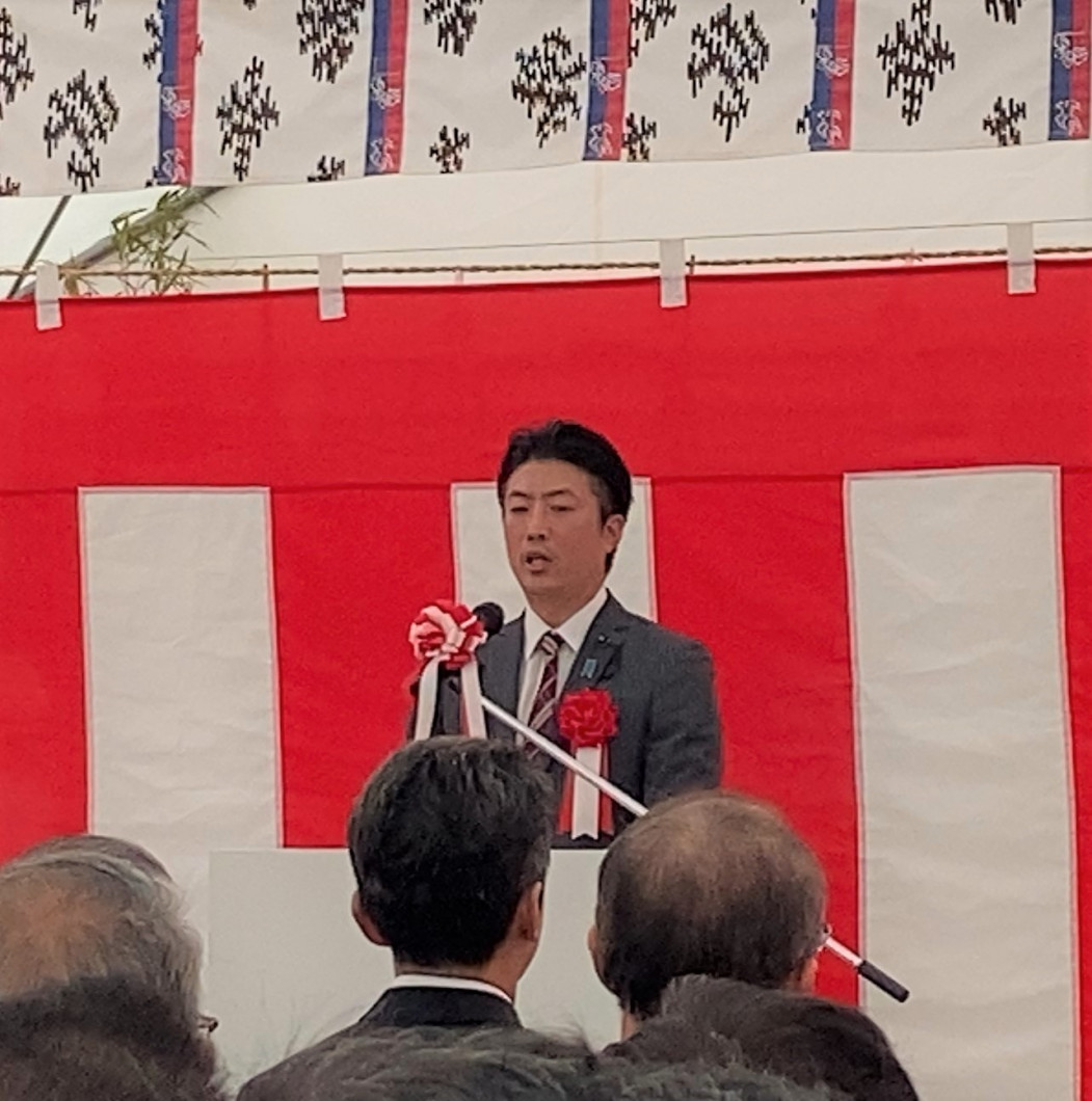 事業主挨拶:長崎県対馬振興局 来賓代表挨拶:長崎県議会議員 施工者謝辞:株式会社奥村組 執行役員
