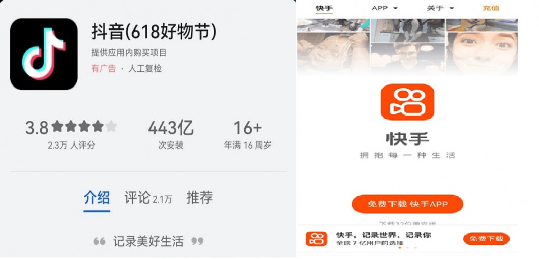 このショート動画ブームのなか、中国産のショート動画アプリもたくさん生まれてきました。その中で「双璧」と認められているのは「抖音(Douyin)」(中国語で振動音という意味)と「快手(Kuaishou)」(中国語で手がはやいという意味)です。