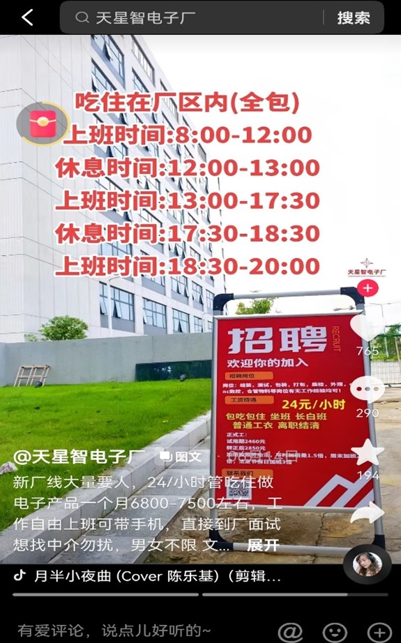 今、毎月2.5億人のブルーカラーが「快聘」で仕事を探しており、10万社以上の企業が求人情報を出しているといいます。ショート動画アプリやライブ配信プラットフォームを利用して就職を希望するブルーカラーの割合は17.7%で1年か2年前より12.4%増加したそうです。[1]