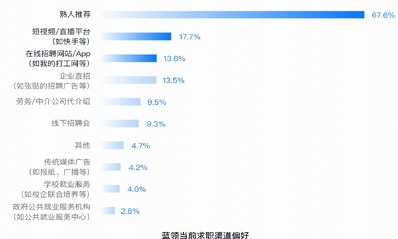 (ブルーカラー層の求職ルートのプリファレンス、「新華網」より)