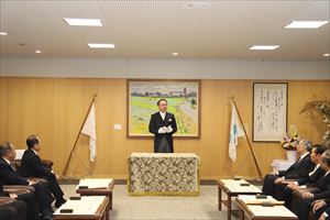 消防、教育及び地方自治などの各分野において、長年にわたり活躍され、多大なご功績を残された20名の方へ大石知事が勲記・勲章、章記・褒章を伝達しました。