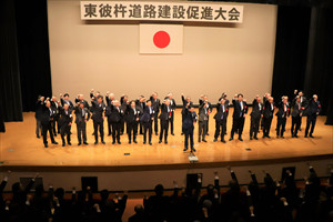 大会は、東彼杵道路の早期事業化に向けて、ガンバロー三唱で締めくくられました。