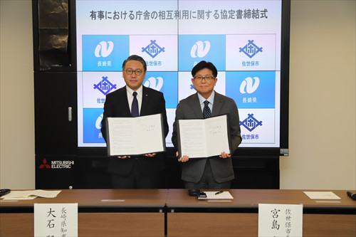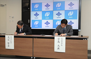 2月15日、大石知事は、県庁において、宮島佐世保市長と「有事における庁舎の相互利用に関する協定書」を締結しました。
