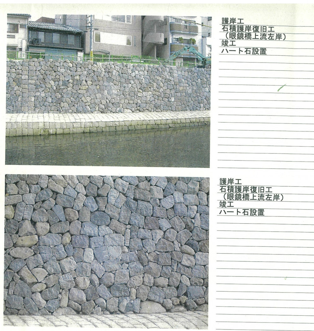 中島川のハートストーンの隙間を埋めました。(令和6年9月30日)
