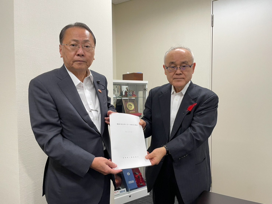 令和6年10月4日(金曜日)、長崎県人事委員会は、県議会議長及び知事に対し、職員の給与等に関する報告及び勧告を行いました。
