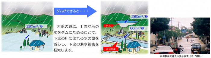 Q.石木ダムにはどのような役割がありますか? 石木ダムには3つの役割があります。 1.洪水調節 川棚川の大雨による洪水被害を軽減し、人々の命とくらしを守ります。 2.水道用水の供給(佐世保市新規利水) 佐世保市の深刻な水源不足に対し、安定した水源を確保し、人々の安全・快適な暮らしを支えるとともに活力を与えます。 3.流水の正常な機能の維持 渇水時も川の水の流れを安定させ、既得の用水(農業用水、町水道など)を確保し、水生生物の生息環境・景観を保全します。