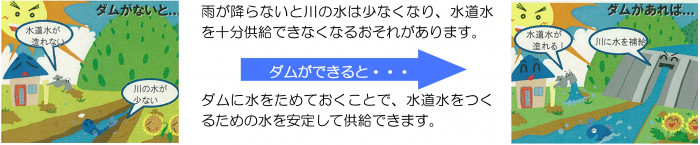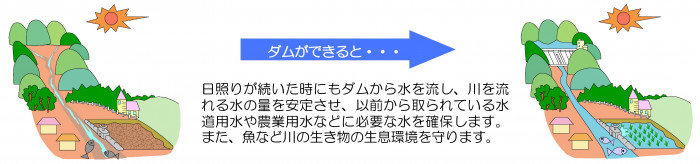 ダムの役割 Q.石木ダムにはどのような役割がありますか? 石木ダムには3つの役割があります。 1.洪水調節 川棚川の大雨による洪水被害を軽減し、人々の命とくらしを守ります。 2.水道用水の供給(佐世保市新規利水) 佐世保市の深刻な水源不足に対し、安定した水源を確保し、人々の安全・快適な暮らしを支えるとともに活力を与えます。 3.流水の正常な機能の維持 渇水時も川の水の流れを安定させ、既得の用水(農業用水、町水道など)を確保し、水生生物の生息環境・景観を保全します。 カテゴリー 分類 まちづくり 河川・砂防 河川 石木ダム建設事業 このページを見ている人はこんなページも見ています