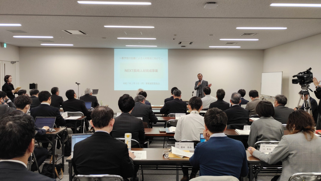 長崎県の地域産業の持続的発展につながる人材育成に向け、産業界と教育現場、大学、県の関係部局等が協働しながら連携を推進するため「NEXT長崎人材育成事業事業運営委員会」を設置しています。