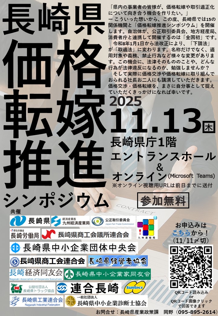 全国初!「長崎県価格転嫁推進シンポジウム2025」を開催します!(11/13)