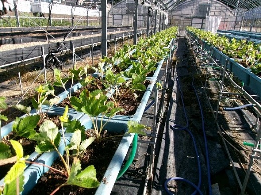 イチゴ栽培では花芽を誘導するため、定植前に窒素施用を中断しますが、その最後の追肥の時期を4段階にわけて設定し、その後の生育、収量そして芯止まり果の発生状況について調査します。