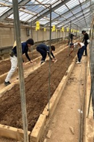 | 今年も、ハウス栽培での良さを有効活用し病害虫の被害を抑えるため、ガラス温室(隔離床)に葉もの類をたくさん栽培する予定です。まだ、葉もの類の発芽には、現在の気温や地温が高く、発芽がうまくいくか心配ですがほうれんそうや小松菜、水菜を播きました(9月4日)。これから、時期をずらしたり、品種を変えたりして、収穫作業が重ならないよう工夫して、楽しく販売できるようにがんばります。 (園芸学科野菜コース学生) |