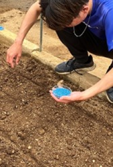 | 班員総出で播種作業 | 種が小さく播種時は集中 |