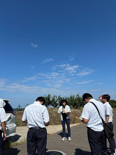 | 園芸学科果樹コース5名で西海市西彼町白崎地区のみかん基盤整備地の視察と大瀬戸コミュニティーセンターで開催された「長崎びわ次世代担い手会議」に出席しました。 基盤整備地では実際の圃場を目の当たりにして効率的に作業できる圃場が実感できました。また、「長崎びわ次世代担い手会議」で試験研究の成果や実際に栽培している生産者の話が聞けて参考になりました。参加したJA職員や生産者に農大の卒業生がいて1年生は在校時の話も聞いていました。(園芸学科果樹コース職員)