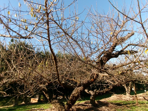 ウメの葉が落葉し、枝についた芽がまだ小さいうちにせん定を済ませておくと、花芽を傷つけるリスクを小さくできます。そこで、昨年とほぼ同じ時期の12月22日に剪定を行いました。