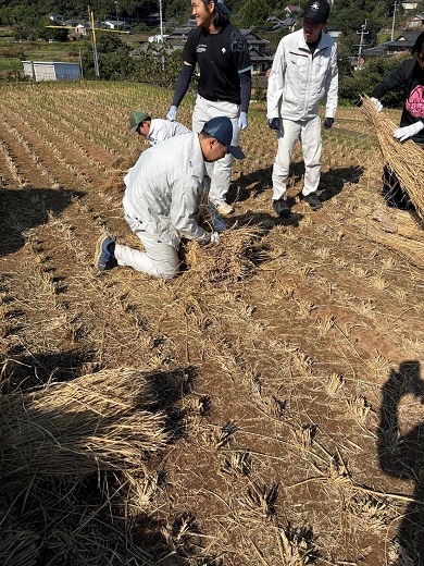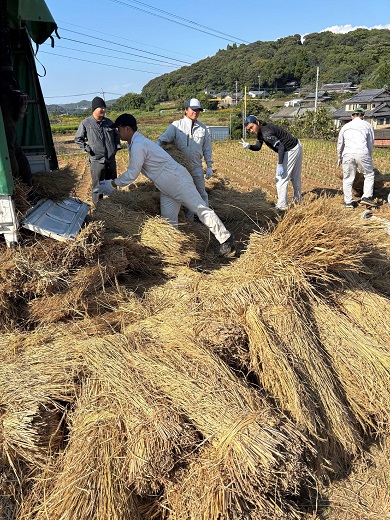 諫早市内の田んぼにみんなで行ってトラックに積み込み作業を行いました。