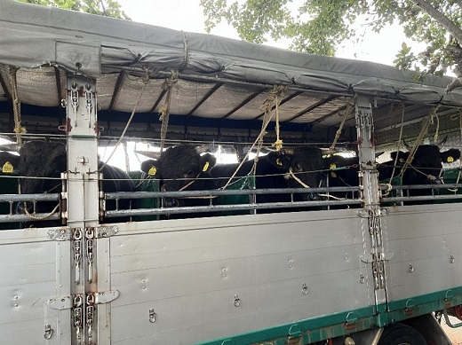 5頭を無事に積みました。今までありがとう。 良いお肉になってね! |