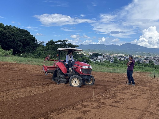 初めは耕うんする場所にロータリーを寄せたり、次の場所を耕うんするための方向転換に苦労する学生もいましたが、回数を重ねるうちにコツをつかみながら演習に取り組んでいました。