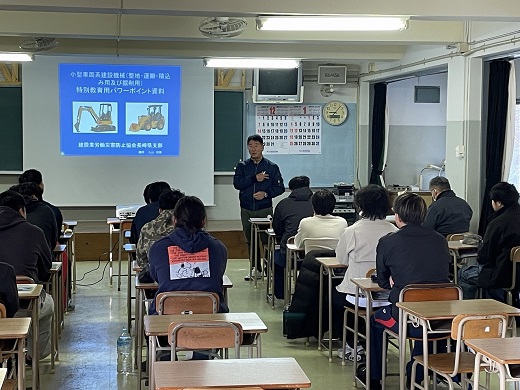 12月23~25日の3日間、建設業災害防止協会長崎県支部から講師を迎え、小型車両系建設機械に係る特別教育(バックホー研修)を農業大学校で開催し、