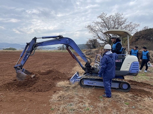 | ほ場で掘削の手順を講師から学び、繰り返し操作して覚えていきました |
