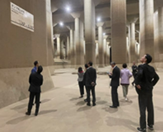 北十間川かわまちづくり 調査状況 3 首都圏外郭放水路(埼玉県春日部市)首都圏外郭放水路におけるインフラツーリズムの取組について調査を行った。 (1)首都圏外郭放水路の概要・総延長:6.3Km(地底50m) ・工期:1993年3月~2006年6月 ・特徴:第1立坑(内径31.6m、深さ71m)、調圧水槽(長さ177m、高さ18m、幅78m)は「地下神殿」と呼ばれ、国内外から多くの見学者が訪れている。 (2)インフラツーリズムの取組
